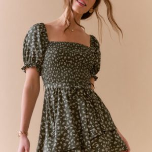 V Neck Floral Mini Swing Dress